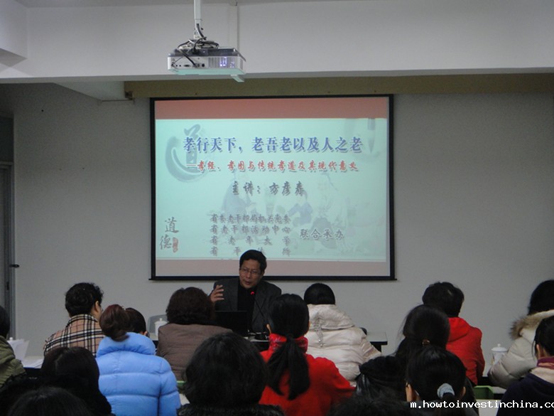 方研究员用风趣的语言、生动的事例,采取历史与现实、理论与实践相结合的方法,诠释了孝经、孝图与传统孝道及其现代意义。传统孝道是祖国优秀传统文化的重要组成部分,理应在当今社会得到大力的弘扬。他认为,行孝要自觉,行孝要及时,行孝要诚敬,要把“孝”这种美德和仁爱之心由家庭扩大到全社会,从孝敬父母提升到热爱祖国,热爱人民。