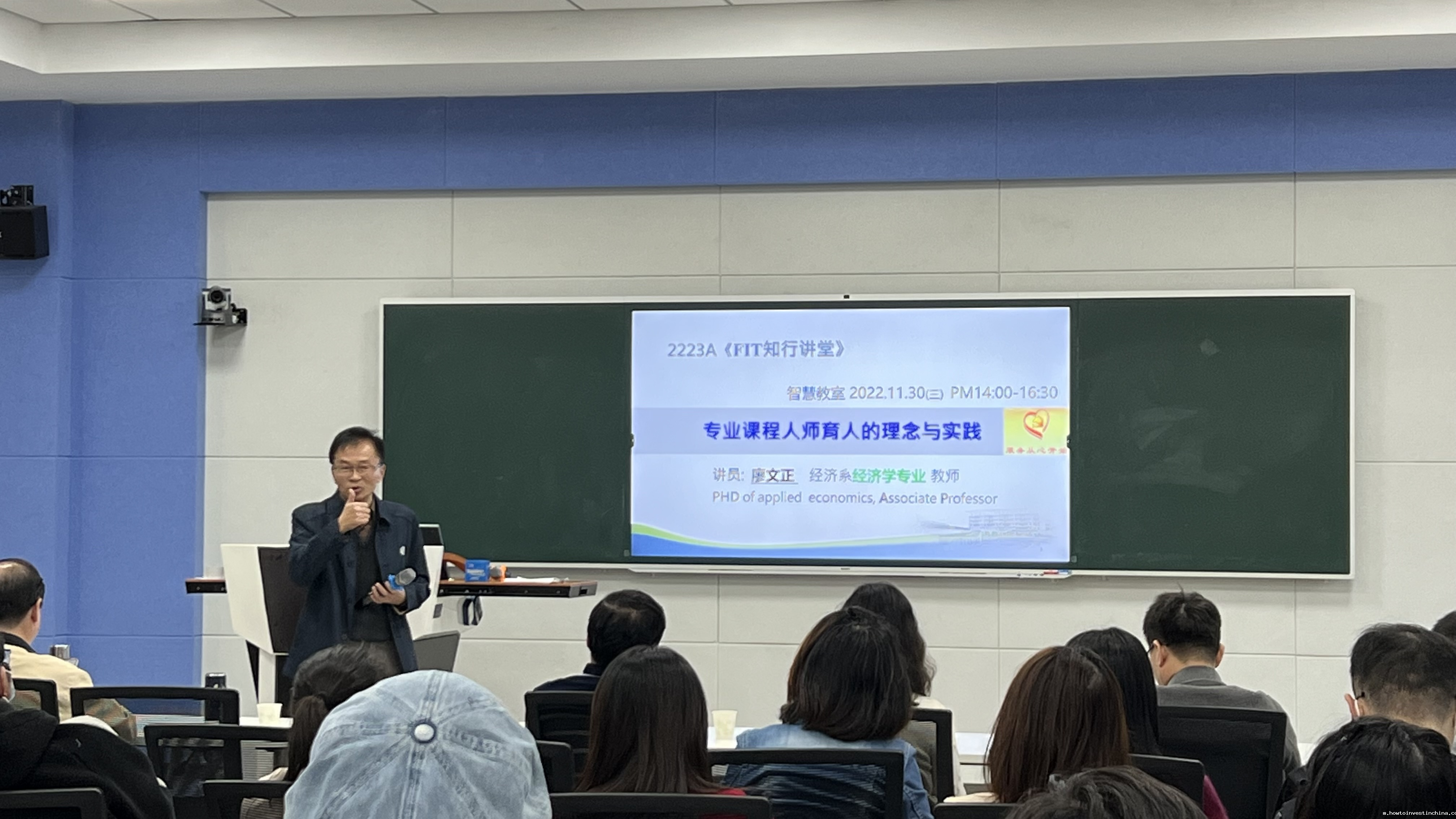 “水尝无华,相荡乃成涟漪;石本无火,相击而发灵光”。为发挥骨干教师的示范引领作用,增进课堂教学经验交流,帮助广大青年教师不断课堂教学水平。11月30日下午,我校举办第八场“知行讲堂”活动,本次活动由商学院承办,邀请商学院廖文正和计弘仁两位博士做《专业课程人师育人的理念与实践》及《提升教学品质,从改变观念开始》分享。