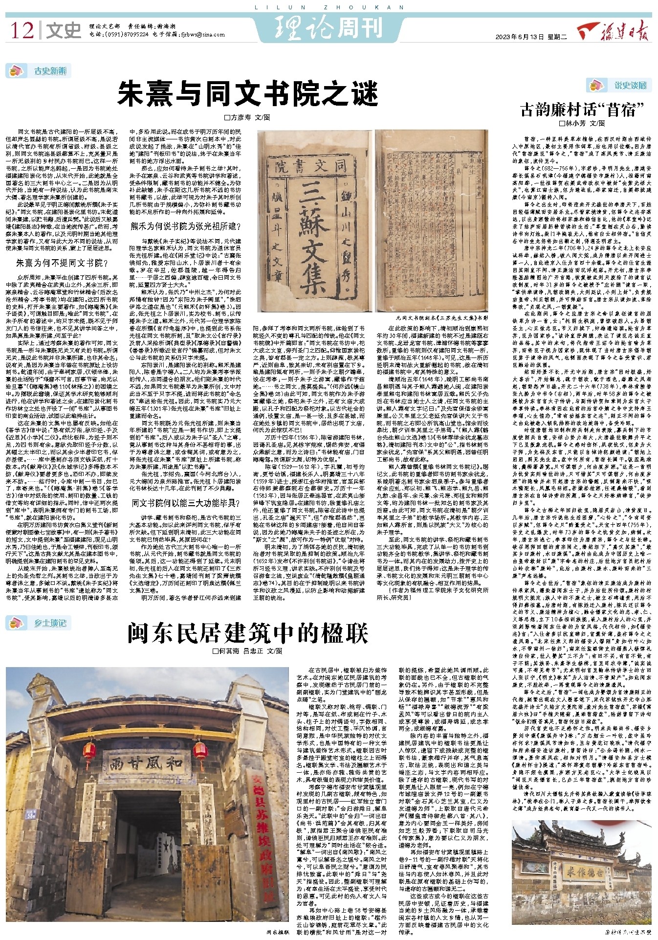 东阳崇川,是建阳崇化的别称。熊禾是建阳人,陈普是宁德人。二人均为朱熹考亭学派的传人,志同道合的朋友。他们距朱熹的时代不远,如果同文书院最早为朱熹所创,文中对此当不至于只字不提,进而将此书院的“命名权”奉送给张光祖。因此,同文书院实乃元大德五年(1301年)张光祖在朱熹“书库”旧址上重建而命名。