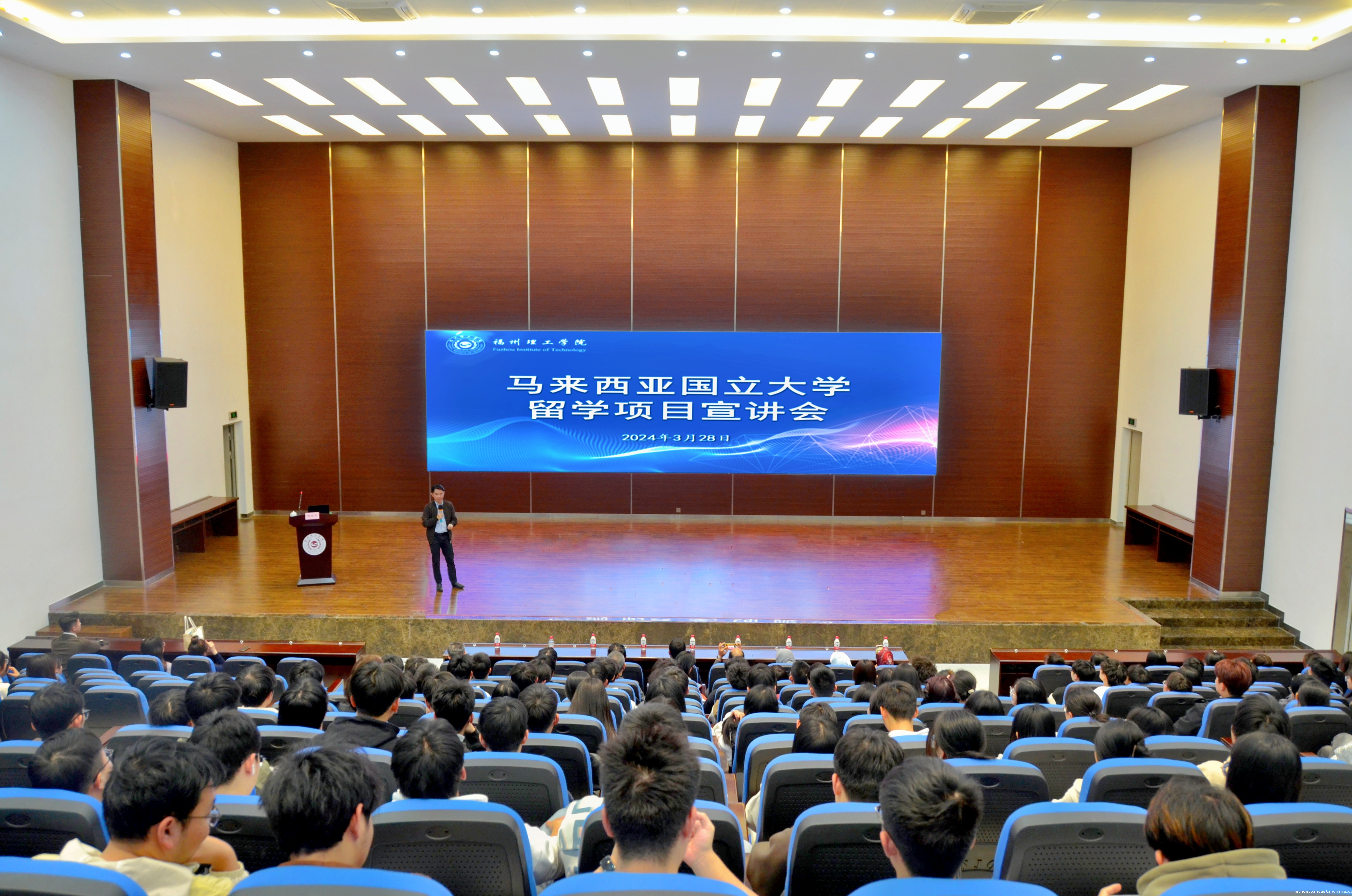 宣讲会上,马来西亚国立大学科学与技术学院(FST)院长伊沙克·艾哈迈德(Prof.Dr.Ishak Ahmad)与该院谢振华教授一起同现场200余名学生进行交流,解答疑惑。我校学生积极互动,赢得了来校嘉宾的赞许。
