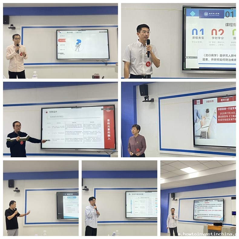 现场教学设计创新汇报比赛过程中,参赛教师结合课程设计思路和教学创新改革进行了15分钟汇报。各参赛教师精心准备,主要围绕立足于课堂教学真实问题,“以学生发展为中心”的理念,以“四新”建设要求贯穿到教学过程中为目标,以充分利用现代信息技术开展课程教学活动和学习评价为手段,提出新的教学理念和举措、凝练解决问题的思路与方案,通过不断的教学改革创新,提升课程的建设水平,比赛现场氛围紧张激烈,精彩纷呈。