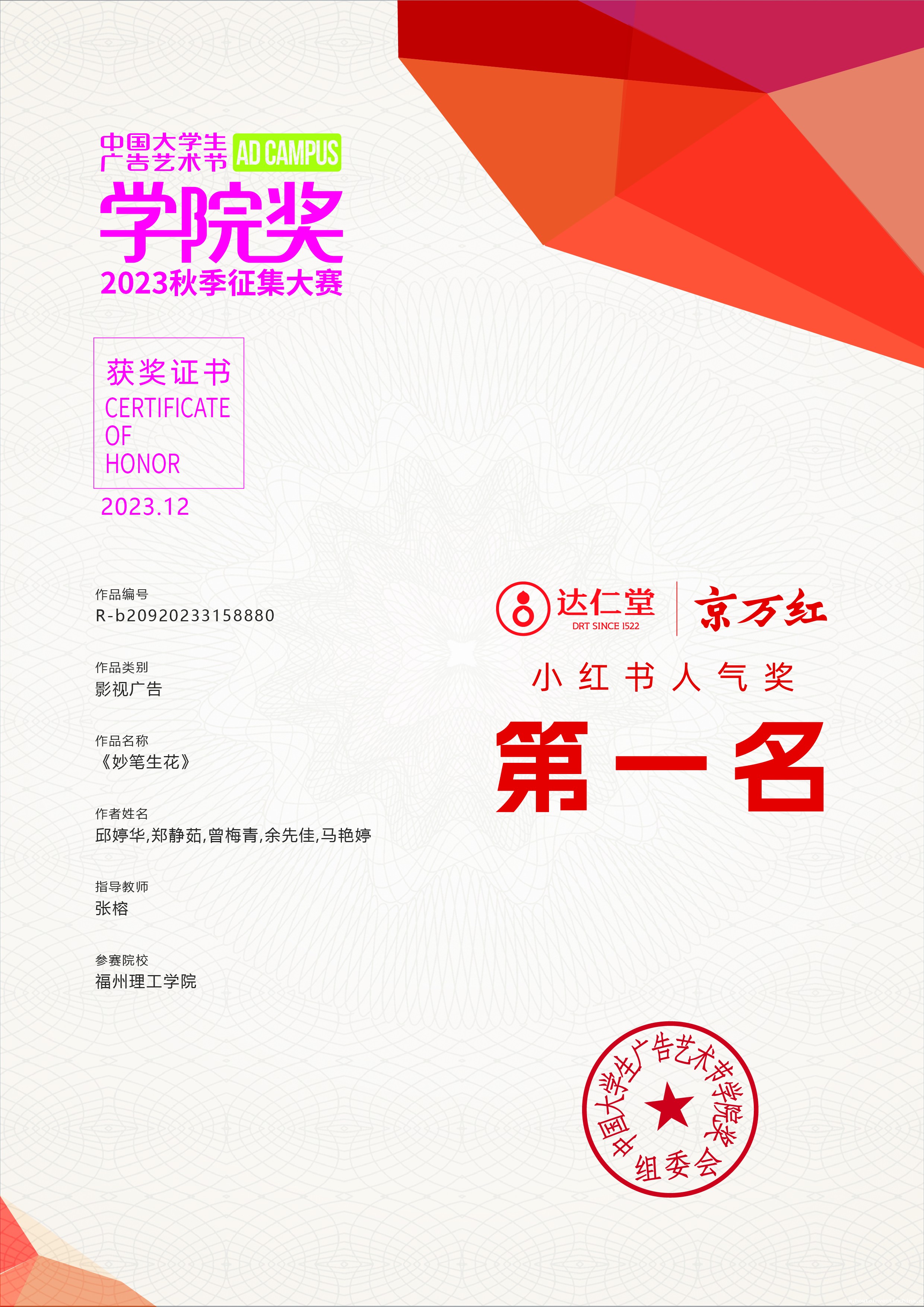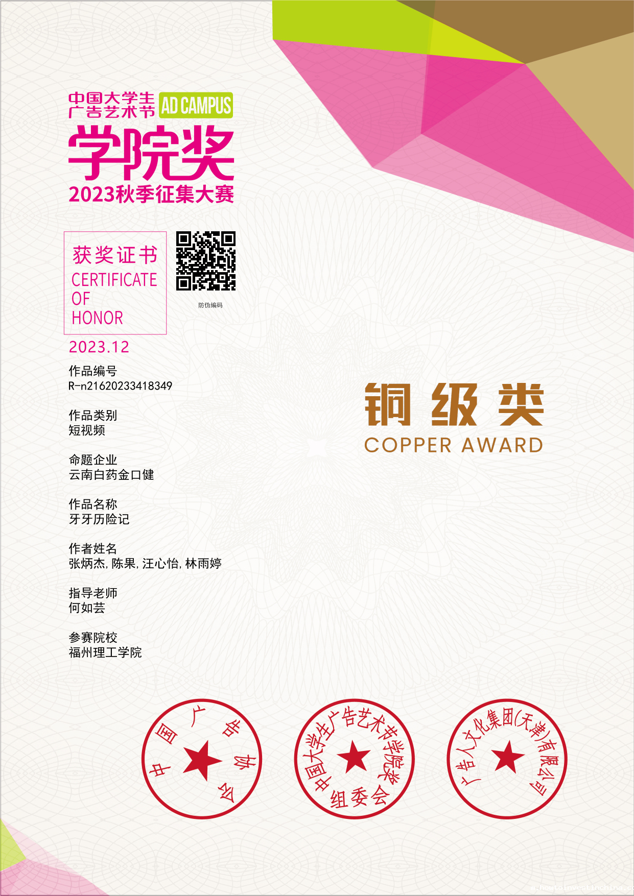 凛冽寒冬,青年的创意如点点星火点燃沸腾。点点官方app下载传媒艺术系学生邱婷华、郑静茹、曾梅青、余先佳、马艳婷作品《妙笔生花》(张榕老师指导)斩获京万红命题影视广告类企业奖一等奖(小红书人气奖)!传媒艺术系学生张炳杰、陈果、汪心怡、林雨婷作品《牙牙历险记》(何如芸老师指导)斩获云南白药金口健命题短视频类铜奖!